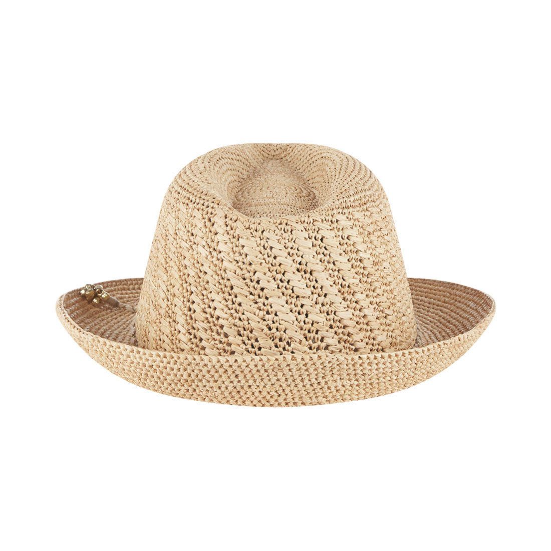 Crochet Raffia Fedora Material: 100% Raffia Size: 2 1/2' Brim/ 57 cm adjustable