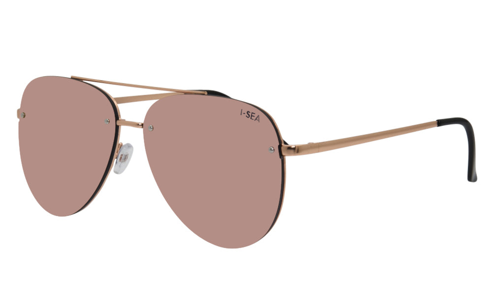 Classic aviator style glasses with a slim brow bar, bold rimless floating lens, and adjustable nose pads for no-slip wear.