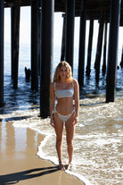 The Levy Bikini Bottom got an update in our new print - Sailing Along Stripe. These bikini bottoms are rockin' our classic coverage and signature tie sides for a customizable fit. You'll be ready for wherever life takes you in the Levy. Pair it with our triangle top for a timeless bikini look.