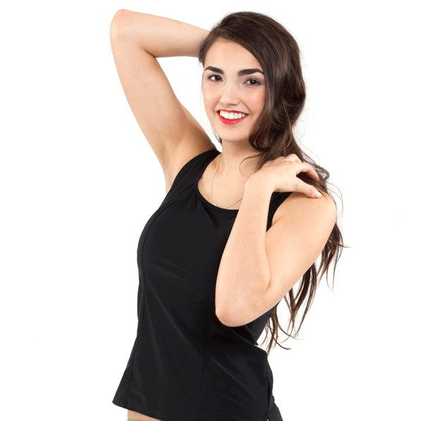 Retro Tankini Swimsuit featuring front princess seaming, wider shoulder straps and a small sporty v-cut accent at the hips. This Retro Tankini Swimsuit also features a built in shelf bra for additional support. Made in Portland, Oregon, USA!