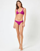 Our latest french-cut, low-rise bikini bottom is here and we're calling it The Rocky. This classic coverage bikini has wide strips on the hips for added comfort. Be sure to add it to your swim stash in any of our ribbed colors.