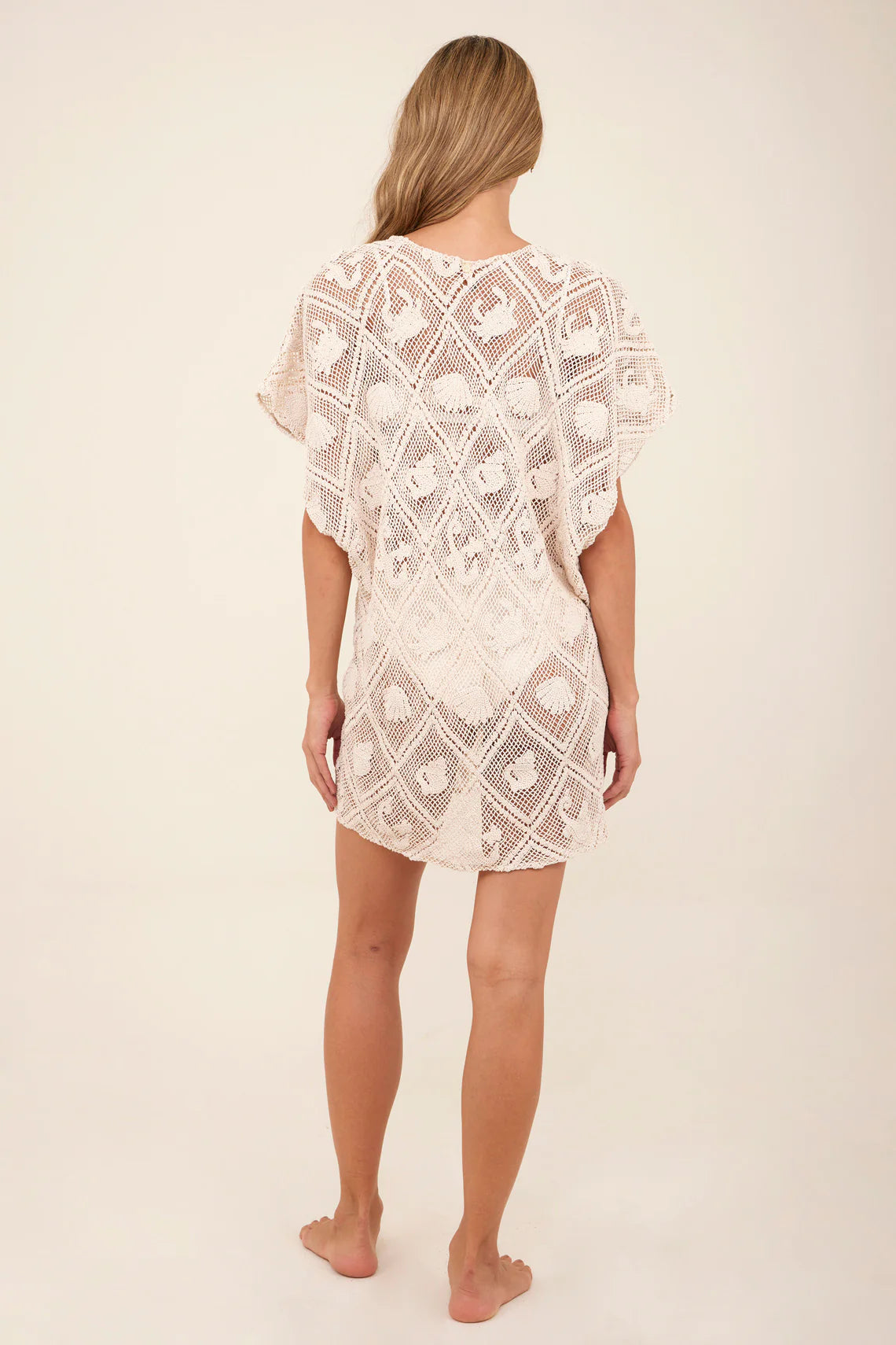 Open knit dress that showcases a U-shape neckline. It’s the perfect piece for a sophisticated beach-to-bar look.
