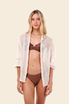This shirt features slightly balloon sleeves and a sheer design, crafted from a knitted fabric. It's the perfect piece to complement a chic and fashionable look