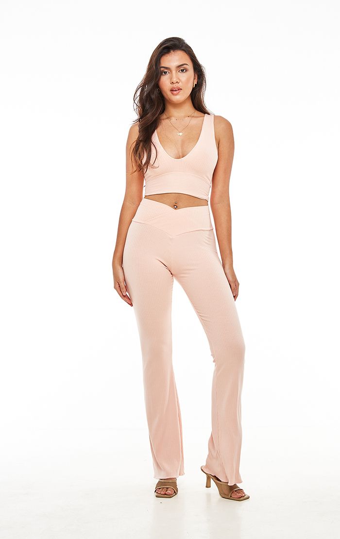 Meringue solid deep u band top in Allure. Model is wearing size 1. Made with Rib Modal—this fabric combines coverage and support with a downy-soft touch.
