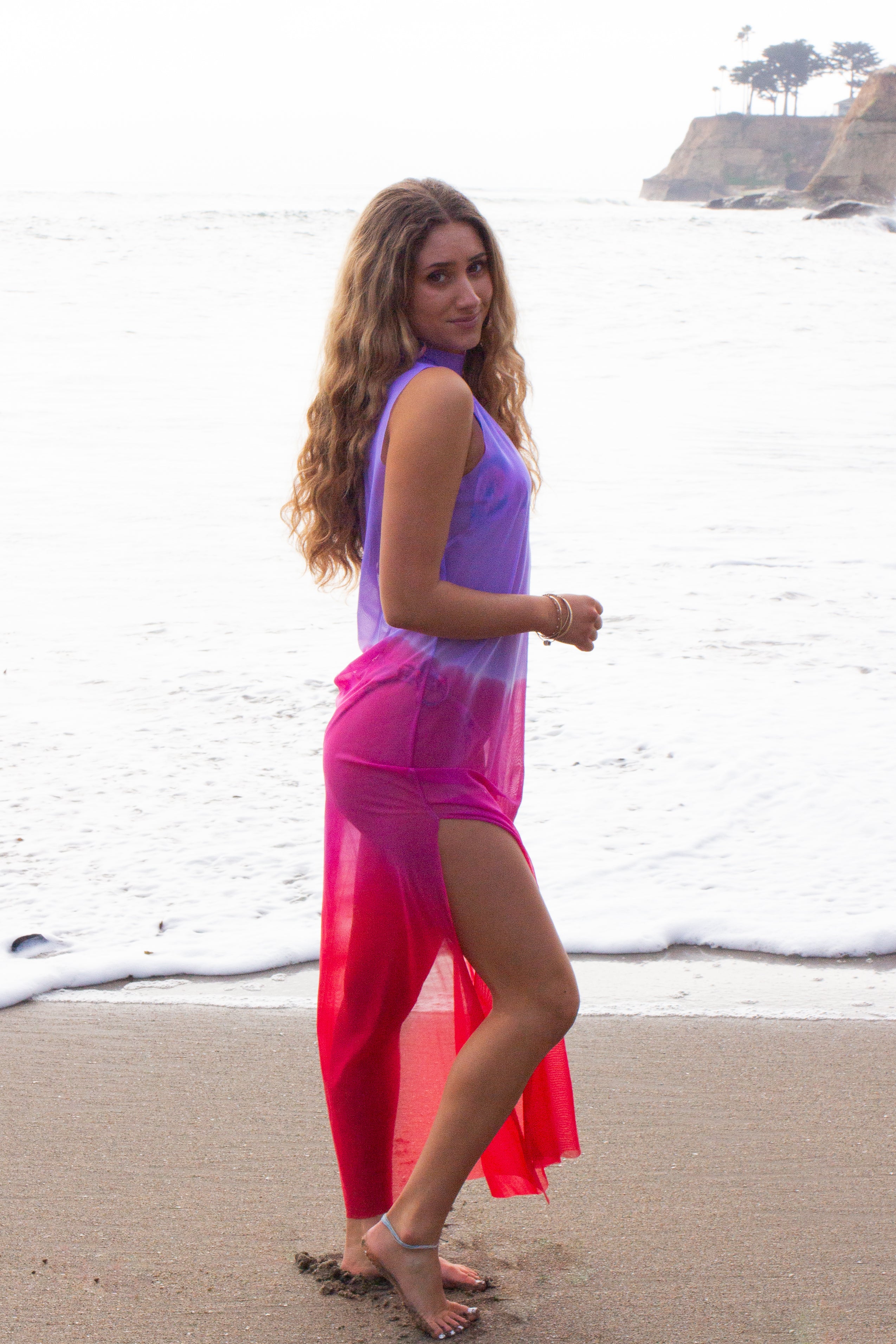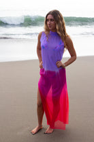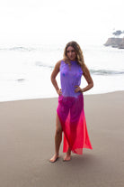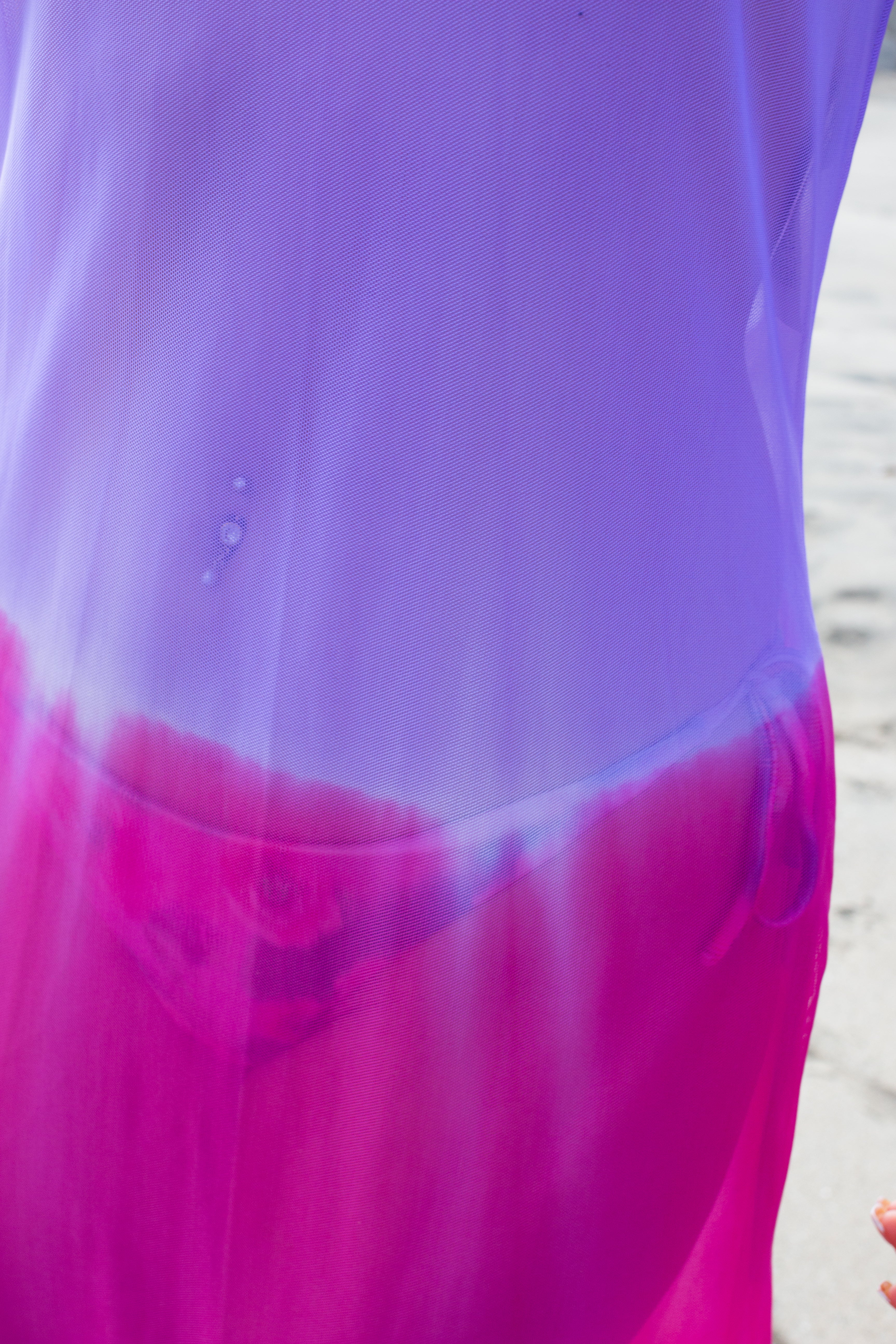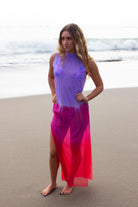 The most stunning lilac purple and vibrant fuchsia ombre dress. Soft mesh with slits on both sides for effortless comfort and elegance.