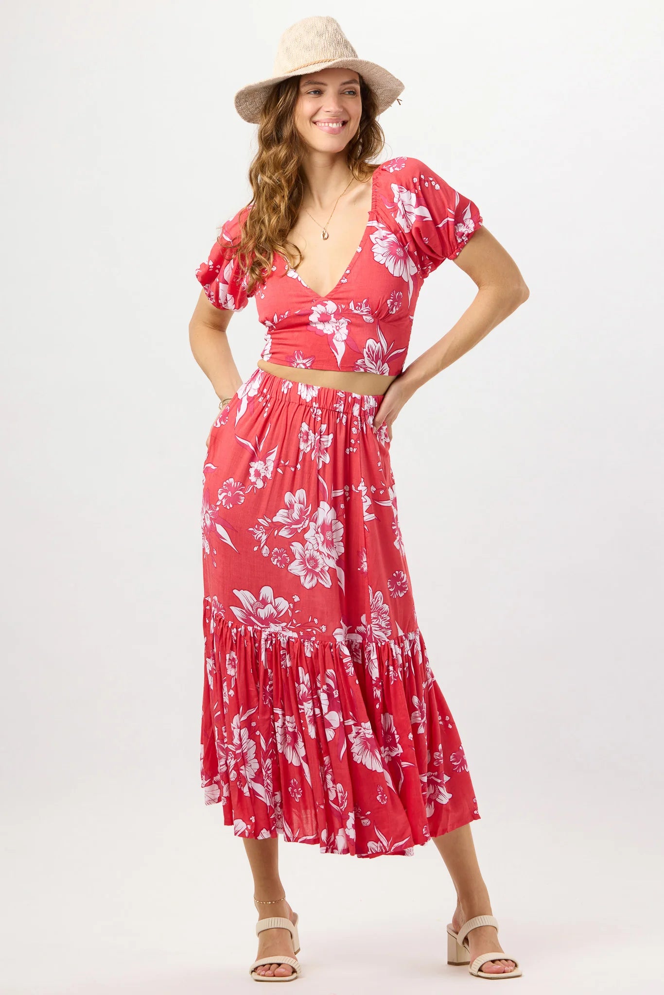 Breezy and carefree, this loose-fitting skirt was made for coastal wanderings. Featuring a soft elasticized waistband for all-day comfort, it flows effortlessly with every step. A delicate ruffle panel adds a touch of playful charm, perfect for catching ocean breezes and turning heads along the shore. Pairing perfectly with the Selkie Top, just add a sunhat and sandals for the ultimate beachy look.