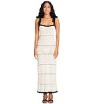 Unique and elegant white dress featuring distinct patterns throughout and black details, creating an elegant and modern look perfect for a sunny day. Ethically produced in a sustainable factory and handcrafted by Peruvian artisans.