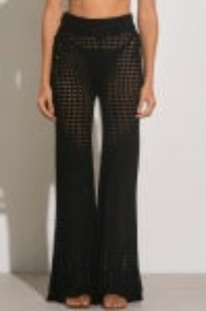 Open knit crochet pants in Black.