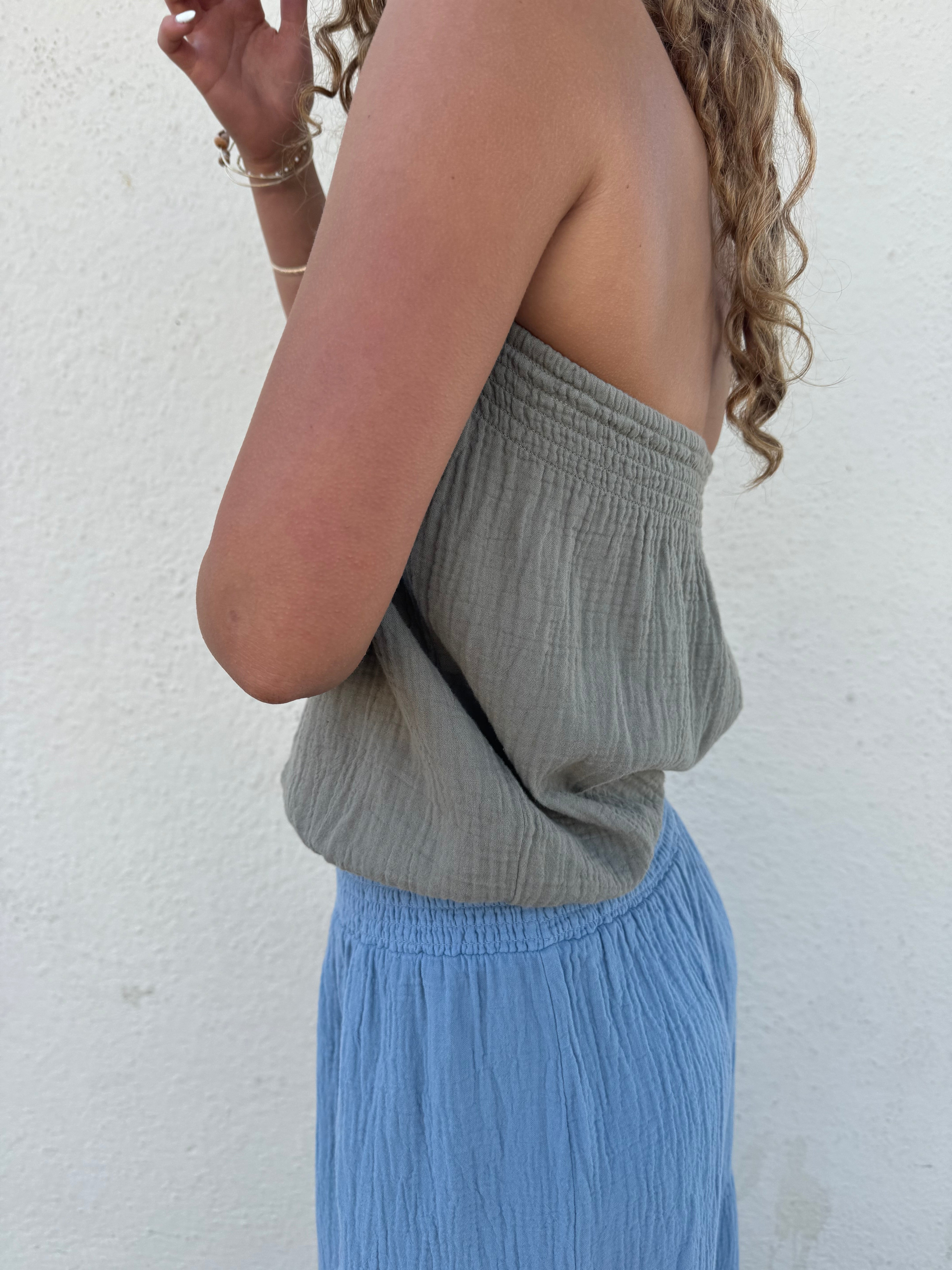 Our most-loved tube top is back! Featuring a smocked neck and hemline, this top has a beautiful blouson effect. Get it while you can and pair it with any of our gauze bottoms for a matching set!