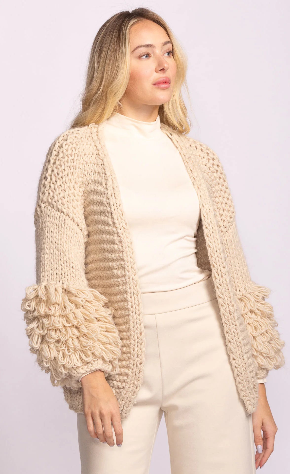 The Palermo Sweater is a chunky knit cardigan with statement sleeves that elevate any look. Designed with a relaxed fit and drop shoulders, it layers easily over a basic top or dress for a fun, stylish outfit that's perfect for going out.