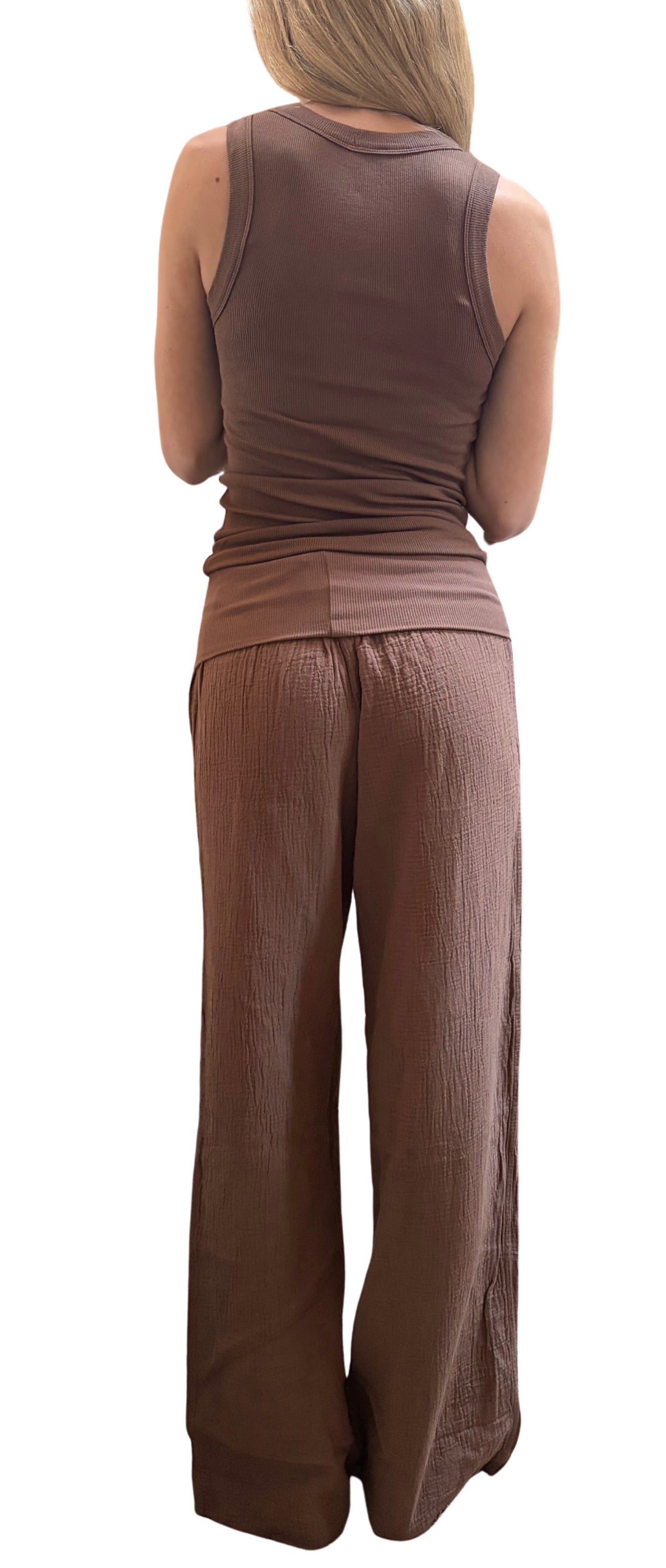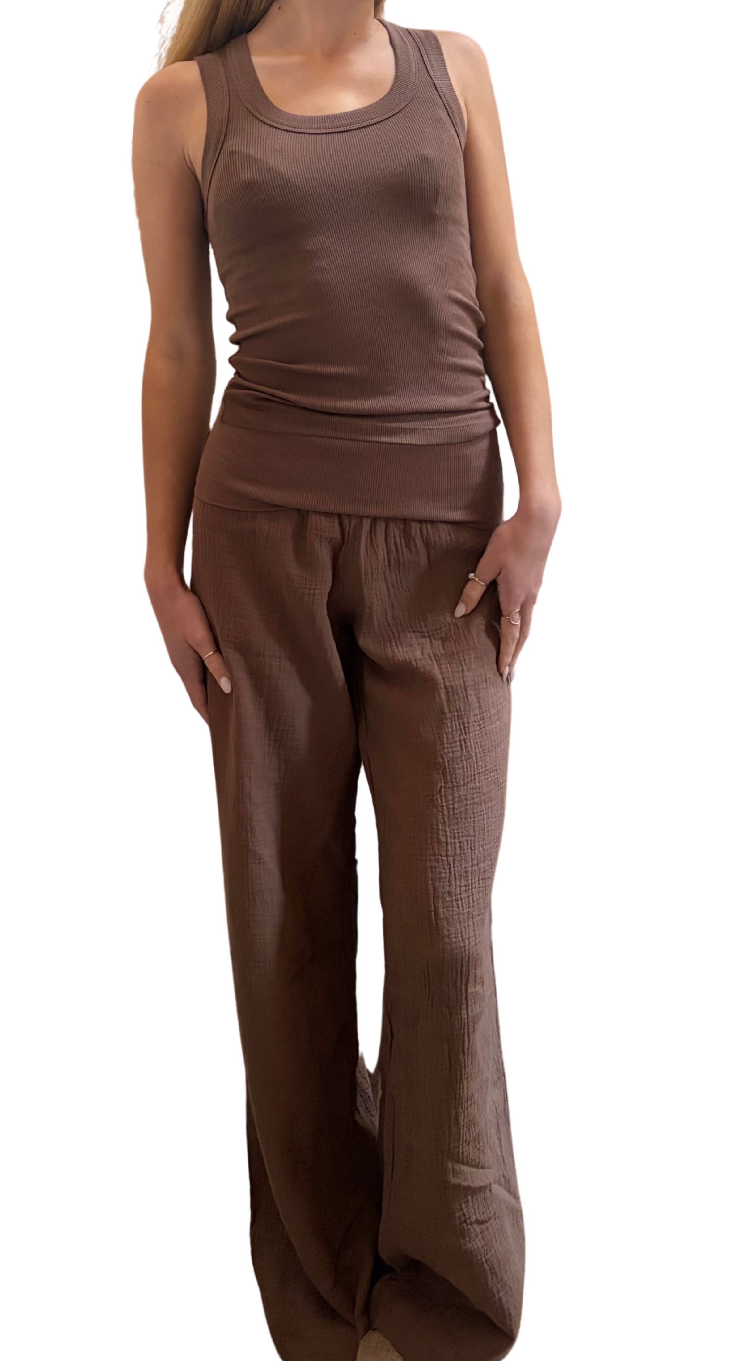 Scooped neck tank top in Roast