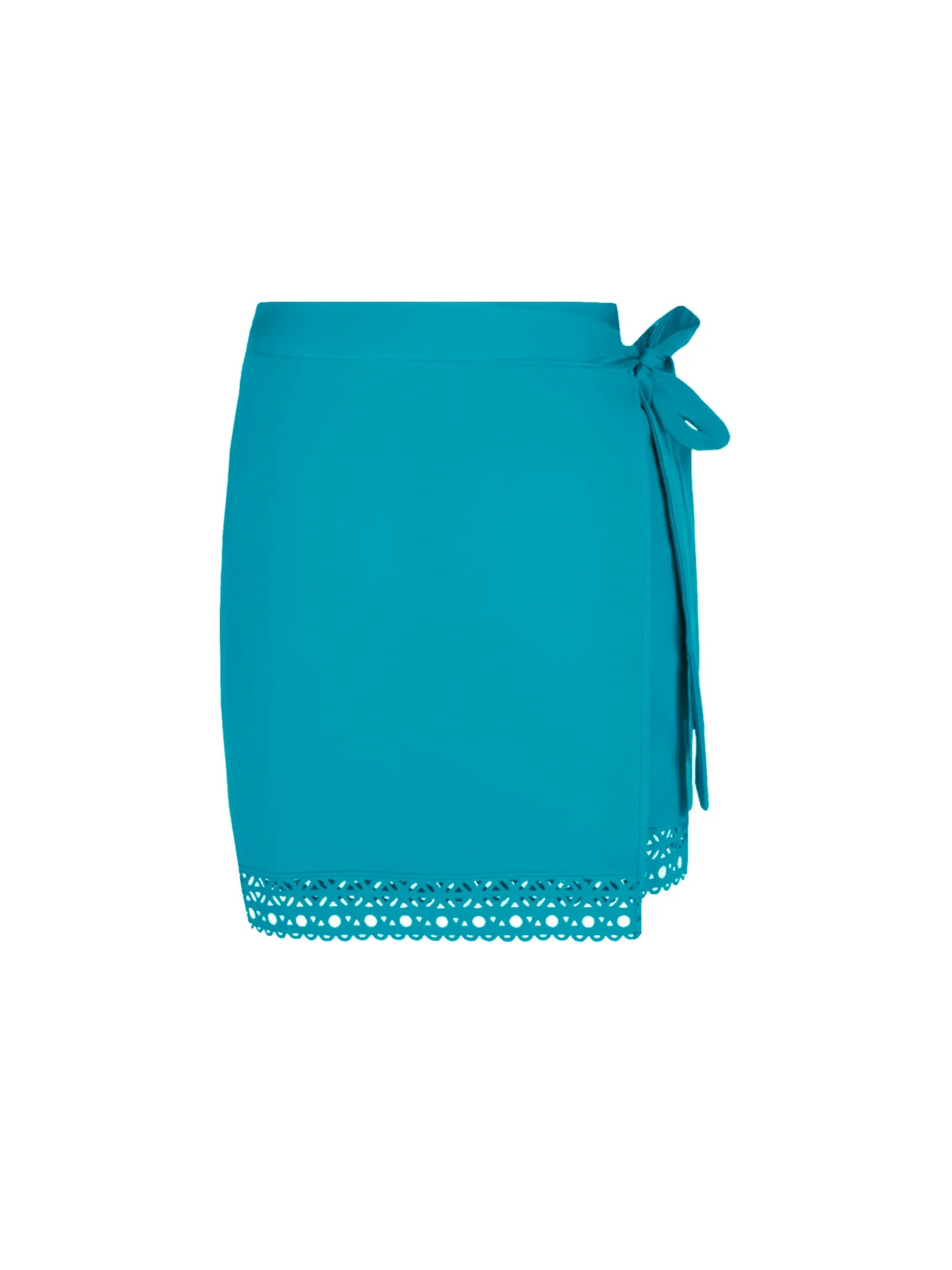 Wraparound sarong adorned with a delicate sheer band at the bottom.