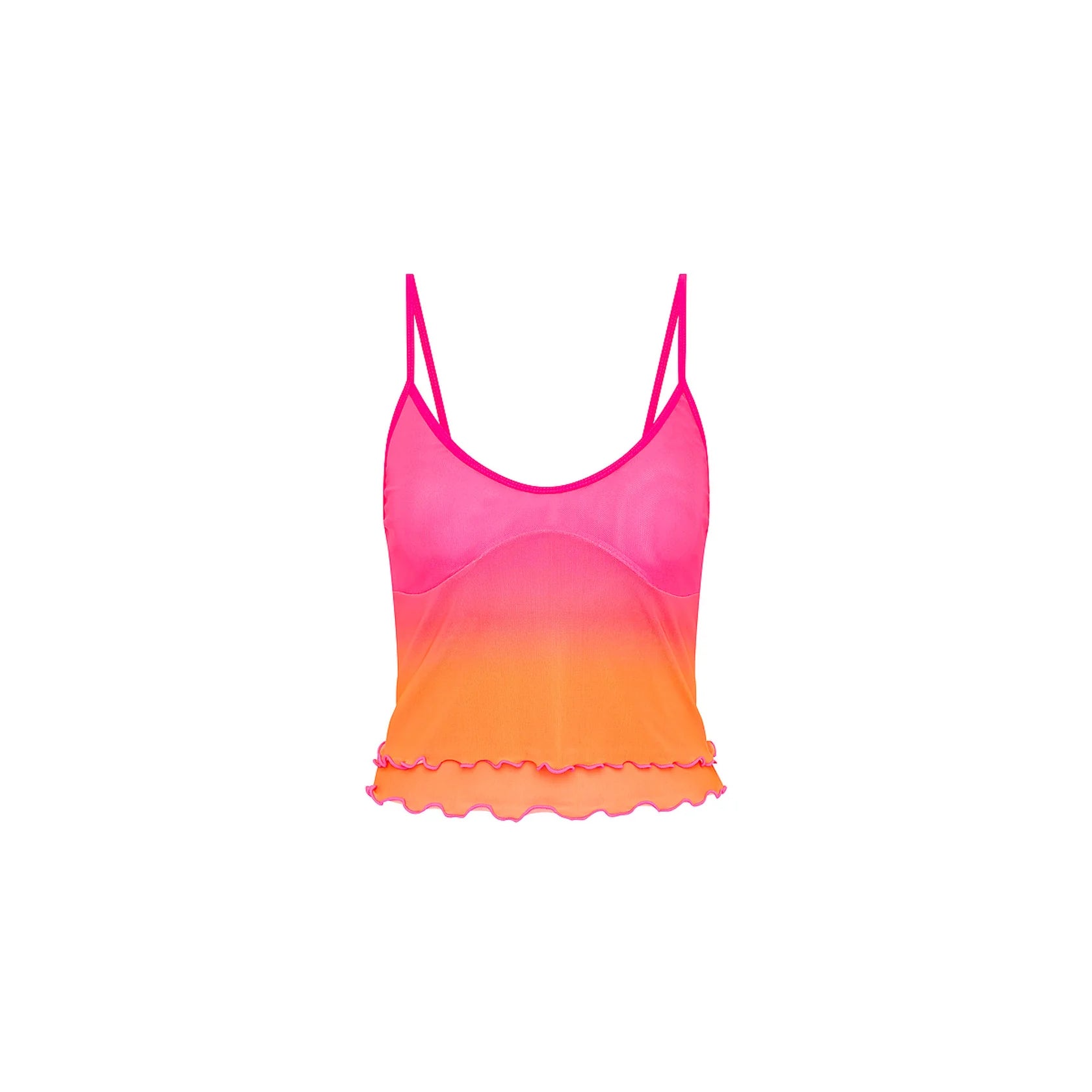 Our Layered Mesh Cami features a flattering sweet heart neckline with a double-layer mesh bodice that is semi sheer. Made with our signature 'mermaid tail' inspired lettuce edge hem and adjustable shoulder straps - making this the easiest and most stylish fit!