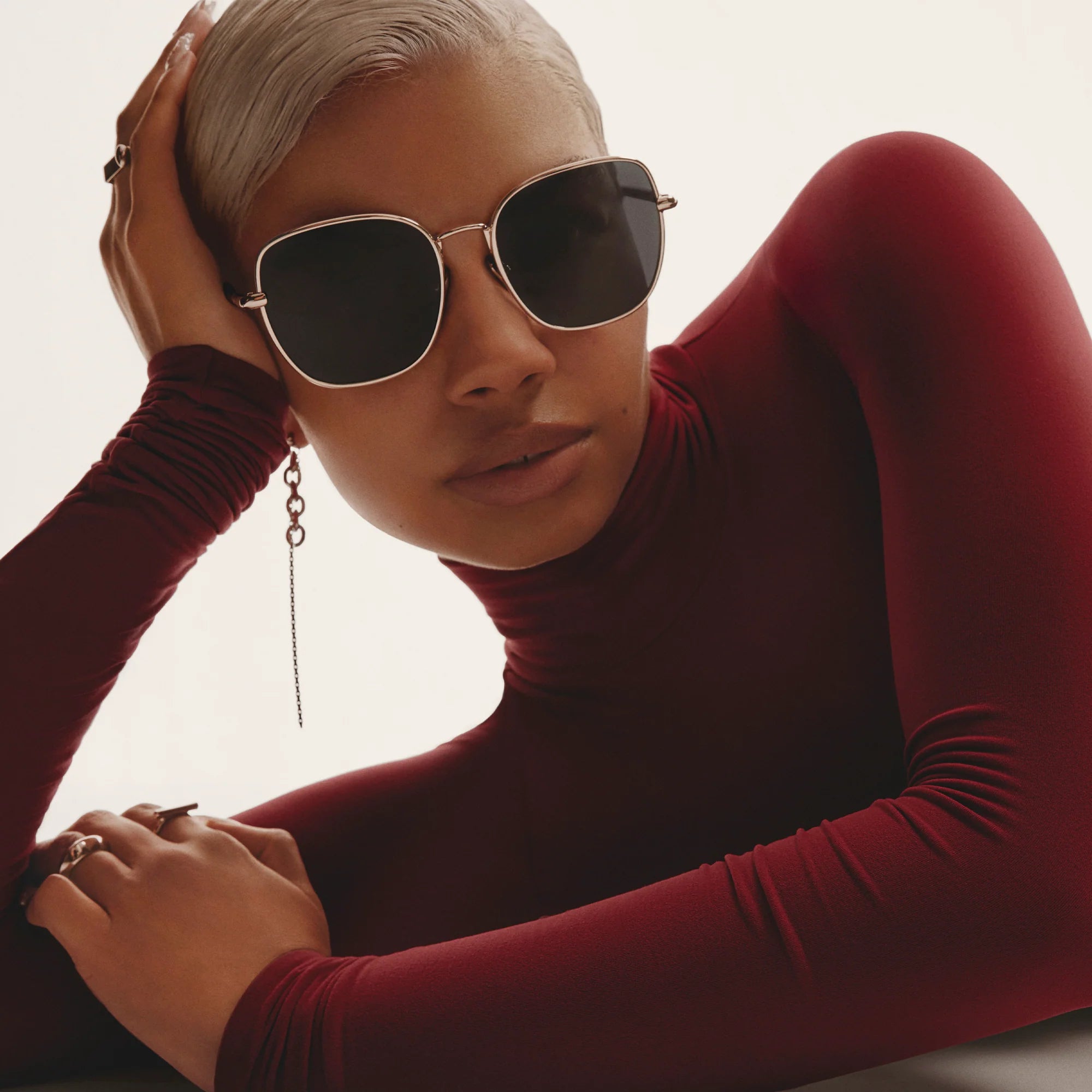 UPTOWN, where elegance meets edge. This oversized round features soft lines and luxe shine that doubles as jewelry.